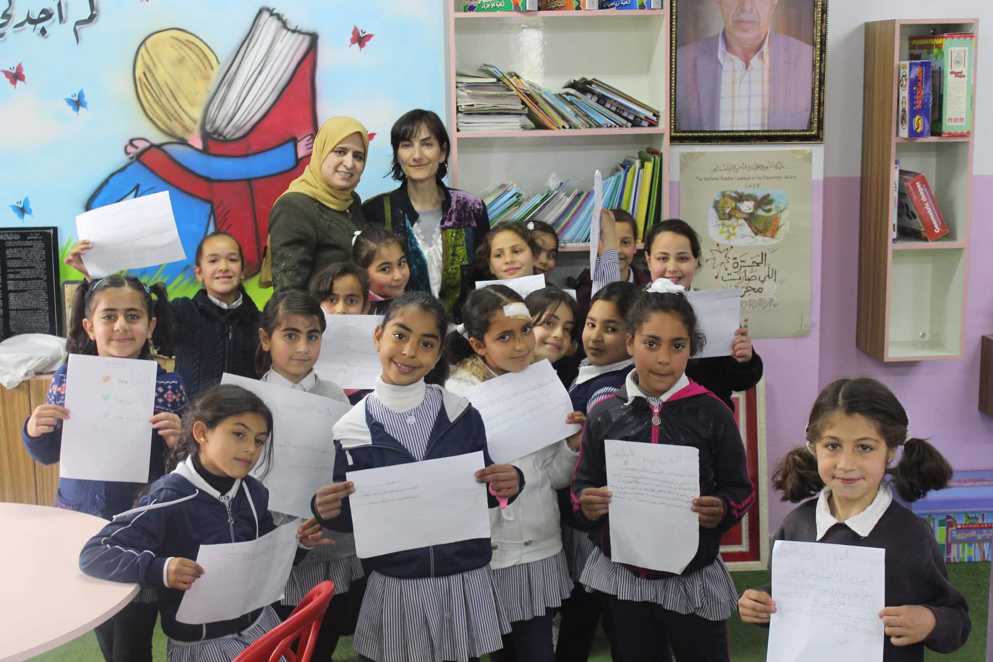 نشاط الكاتبة ابتسام بركات مع أطفال الصف الثالث في مدرسة رشدية المحتسب/ الخليل.