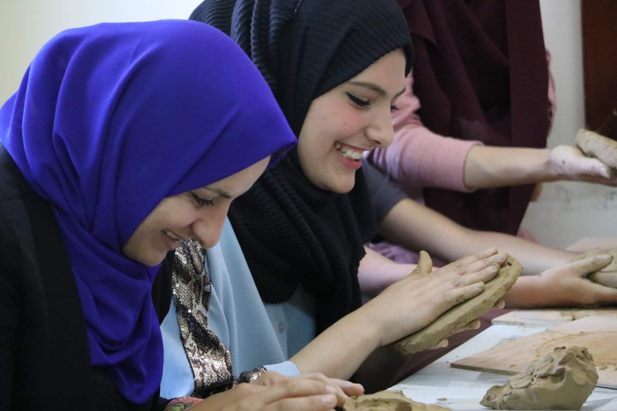 Artist Samia Halabi's activity with the children of Dia Al-Quds School.